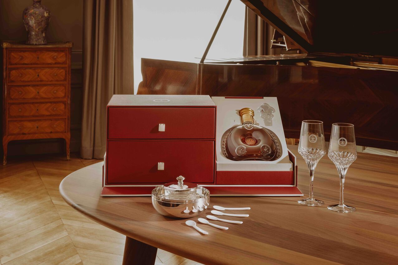 路易十三《礼•尚》系列礼盒均秉持优雅的当代设计理念,采用路易十三经典红色,每一主题的奢华礼盒内部都划分为三个空间。最大的礼盒主室用于放置纯手工精制的路易十三经典装干邑,凝聚着历代酿酒大师的精湛技艺与悉心调配,用于调配的生命之水采用法国干邑地区中心地带大香槟区的优质葡萄进行酿造。此外还设有两个抽屉。上层抽屉装有两只路易十三限量版专属镌刻品鉴杯,由法国设计师克里斯多夫·皮耶 (Christophe Pillet) 专门设计。