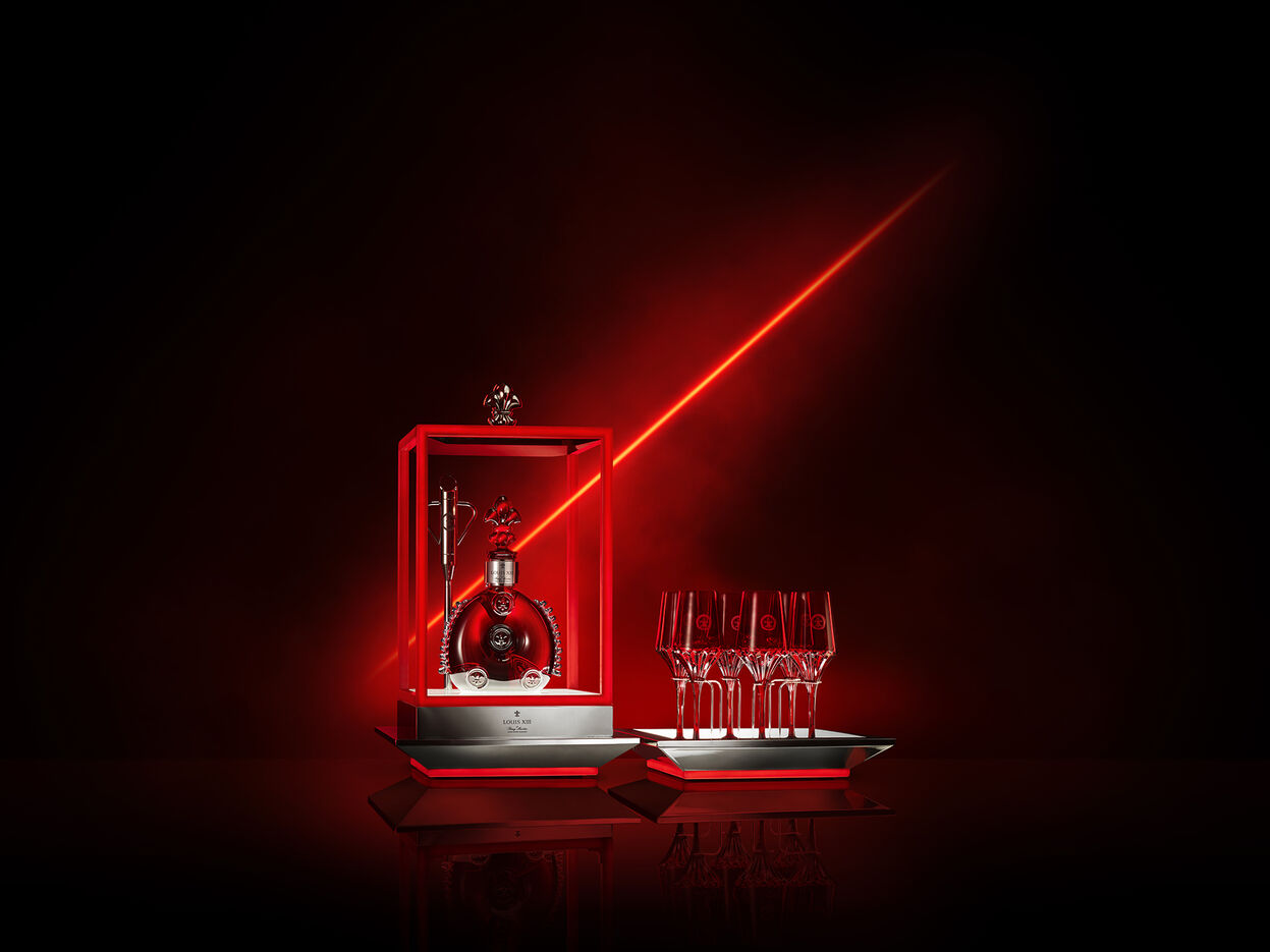 路易十三与历史悠久的欧洲制造商圣路易(Saint-Louis)携手合作,共同打造卓越超群的焕夜N13特别款绯红色酒樽及专属品鉴杯,活力非凡的色调只有借助于添加金质原料的特殊工艺方可实现。焕夜N13特别款酒樽全由手工精制而成,包括吹制、切割、整饰及镌刻专属编号,呈现动人心魄的尊贵绯红色,瓶颈处饰有钯金,樽身两侧饰有透明细齿纹饰,增添点睛之笔,彰显圣路易对于技艺传承、专业知识及开拓创新的热情。路易十三焕夜N13特别款品鉴仪式结束后,如有所需,客户可根据俱乐部规则及当地法规拥有路易十三焕夜N13特别款珍罕酒樽,留作终生难忘的珍藏纪念,并可通过NFC功能瓶塞访问路易十三臻峯汇及所有会员权益。